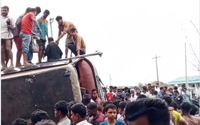 বাহুবলে শ্যামলী পরিবহনের বাস উল্টে আহত ১৫ যাত্রী