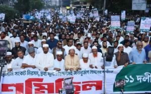 গণভোটের রায় বাস্তবায়নের দাবিতে ১১ দলের বিক্ষোভ