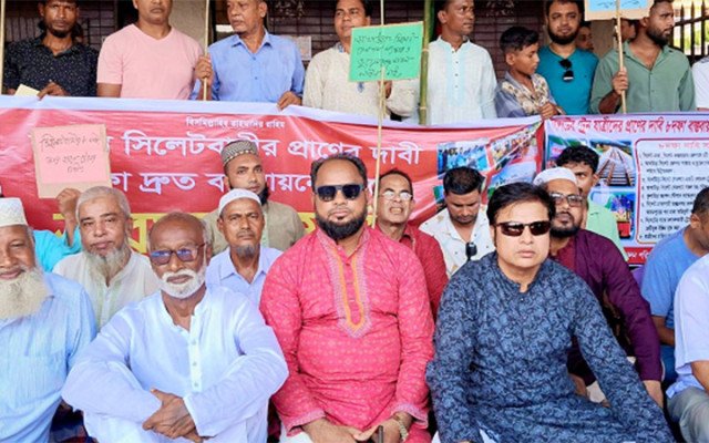 সিলেট রুটে নতুন ট্রেন চালু ও রেললাইন সংস্কারের দাবীতে কুলাউড়ায় অবস্থান ধর্মঘট