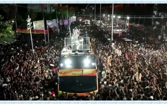 পুলিশ ও স্থানীয় সূত্র জানায়, সমাবেশস্থলে প্রায় ৩০ হাজার মানুষ জড়ো হয়েছিলেন। বিজয়ের উপস্থিতি ছিল দুপুর সাড়ে ১২টায়, কিন্তু তিনি আসেন সন্ধ্যা ৭টা ৪০ মিনিটে। দীর্ঘ সাত ঘণ্টা অপেক্ষায় থাকা মানুষের কাছে পর্যাপ্ত খাবার ও পানি ছিল না। প্রচণ্ড গরমে অনেকেই অসুস্থ হয়ে পড়েন। এ অবস্থায় বিজয় মঞ্চে ওঠার সঙ্গে সঙ্গে হাজারো মানুষ সামনে ছুটে গেলে হুড়োহুড়ি শুরু হয়। কয়েকজন মাটিতে পড়ে গেলে পদদলিত হয়ে মৃত্যু ও আহতের ঘটনা ঘটে।