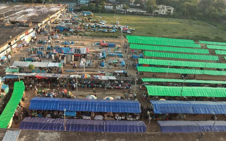 নতুন বাজারে দশটি গলিতে ইট, বাঁশ ও ত্রিপল দিয়ে অস্থায়ী শেড নির্মাণ করা হয়েছে। বাজারে প্রবেশের জন্য রাখা হয়েছে তিনটি প্রবেশপথ।