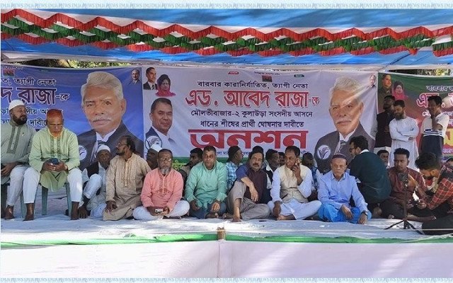 মৌলভীবাজার-২ (কুলাউড়া) আসনে বিএনপি নেতা অ্যাডভোকেট আবেদ রাজাকে দলীয় মনোনয়ন প্রদানের দাবিতে অনশন কর্মসূচি পালন করেছেন তার সমর্থকরা।