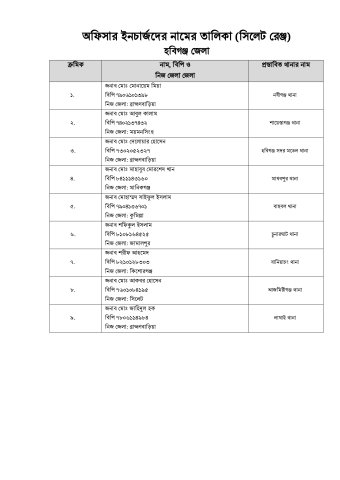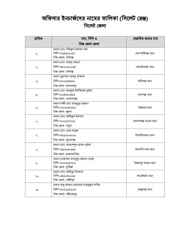 সিলেটের ৩৯ থানার নতুন ওসির তালিকা-