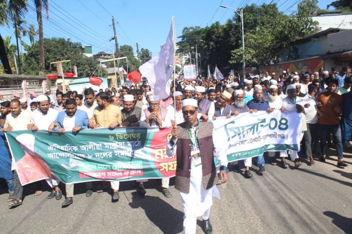 সিলেটে ইসলামী ও সমমনা আট দলের বিভাগীয় সম্মেলন আজ শনিবার আলিয়া মাদরাসা মাঠে অনুষ্ঠিত হচ্ছে। সকাল থেকেই সিলেট বিভাগের বিভিন্ন জেলা-উপজেলা থেকে খণ্ড খণ্ড মিছিল যোগ দিতে থাকে সমাবেশস্থলে। দুপুর ১২টায় আনুষ্ঠানিকভাবে শুরু হওয়া এ সম্মেলনের মূল পর্ব অনুষ্ঠিত হবে বাদ জোহর।