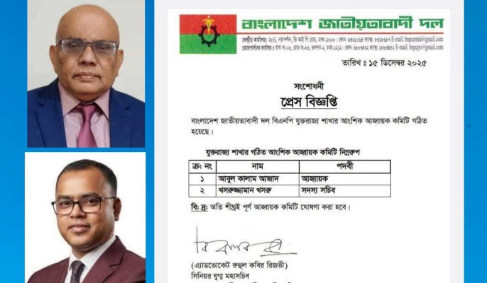 যুক্তরাজ্য বিএনপির আহ্বায়ক আবুল কালাম আজাদ এবং সদস্য সচিব খসরুজ্জামান খসরু
