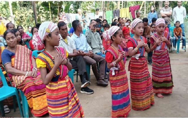 উৎসবের উদ্বোধন করেন স্থানীয় বাসিন্দা ও প্রবীণ সংগীতশিল্পী চন্দনা হাজং।