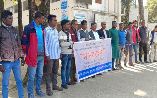 শনিবার (২৭ ডিসেম্বর) দুপুর ২ টায় তাহিরপুর উপজেলায় কর্মরত সাংবাদিক ও সুশীল সমাজ প্রতিনিধিদের অংশগ্রহণে তাহিরপুর উপজেলা পরিষদের সামনে এ মানববন্ধন অনুষ্ঠিত হয়।