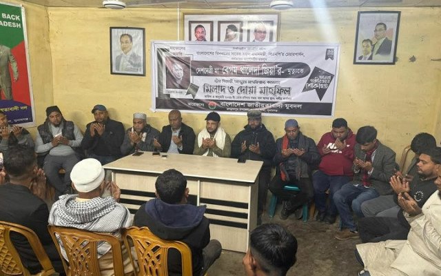 রোববার (৪ জানুয়ারি) বাদ মাগরিব জগন্নাথপুর উপজেলা বিএনপির কার্যালয়ে বাংলাদেশ জাতীয়তাবাদী যুবদল জগন্নাথপুর উপজেলা ও পৌর শাখার আয়োজনে মিলাদ ও দোয়া মাহফিল অনুষ্ঠিত হয়। এতে বেগম খালেদা জিয়ার বিদেহী আত্মার মাগফিরাত কামনা করে মহান আল্লাহ তায়ালার দরবারে বিশেষ দোয়া করা হয়।