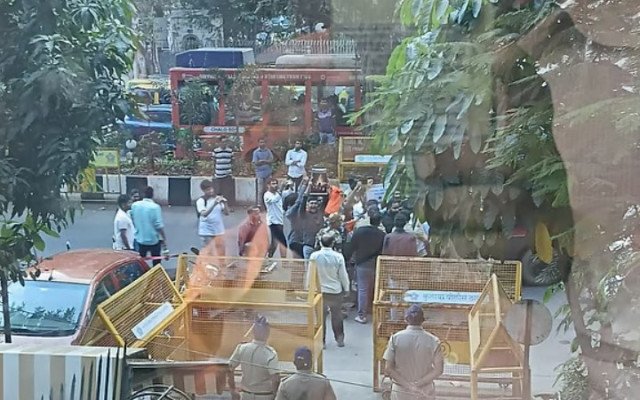 ভারতের মুম্বাইয়ে বাংলাদেশ উপহাইকমিশনের একেবারে সামনে এসে বিক্ষোভ করেছেন হিন্দুত্ববাদী সংগঠন বিশ্ব হিন্দু পরিষদের (ভিএইচপি) নেতা-কর্মীরা। বুধবার (৭ জানুয়ারি) বিকেলে অফিস ছুটির পর কোনো ধরনের আগাম সতর্কতা ছাড়াই ভিএইচপির প্রায় দেড় শ নেতা-কর্মী বাংলাদেশবিরোধী স্লোগান দিতে দিতে মিশনের প্রায় ৩০ মিটারের মধ্যে চলে আসেন। এ সময় পুলিশের সঙ্গে বিক্ষোভকারীদের ধস্তাধস্তির ঘটনাও ঘটে।