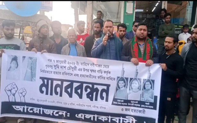 সুনামগঞ্জে সুমি দাশ হ’ত্যাকাণ্ড: বিচার দাবিতে নবীগঞ্জে মানববন্ধন
