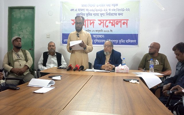 সংবাদ সম্মেলনে ভূমির মালিকরা জানান, ওসমানীনগরের গোয়ালাবাজার ও তাজপুর বাজার এলাকায় ভুমির মূল্য অনেক বেশি। কিন্তু মহাসড়ক উন্নয়ন প্রকল্পের জন্য এসব জমি অধিগ্রহণের প্রক্রিয়া চলছে এবং একাধিক নোটিশও পেয়েছেন তারা। অধিগ্রহণের প্রক্রিয়াধীন এসব ভূমির প্রতি শতক ১ লাখ ১০ হাজার টাকা মূল্য নির্ধারণ করা হয়েছে বলে জানতে পেরেছেন তারা। যা বাস্তবতার সাথে কোন মিল নেই।