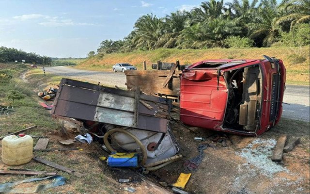 এনএসটি অনলাইনের প্রতিবেদনে বলা হয়, শনিবার (১৭ জানুয়ারি) স্হানীয় সময় দুপুর আনুমানিক ২টা ২৫ মিনিটে রোমপিনের কামপুং পেরভিরা জয়ার কাছে জালান ফেলদা সেলানচার-ফেলদা রেডং সড়কে এক টন ধারণক্ষমতার একটি লরি উল্টে গেলে এ দুর্ঘটনা ঘটে।