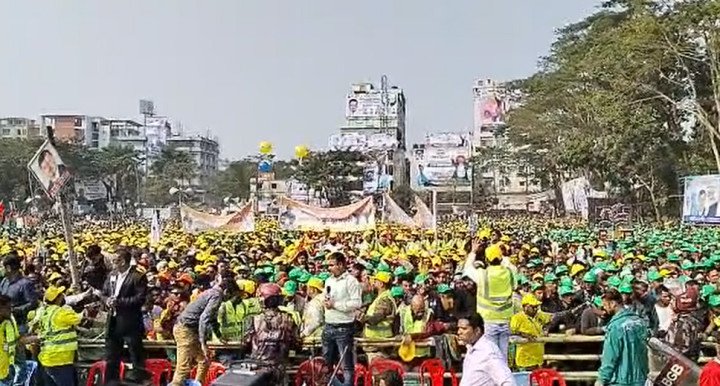 বৃহস্পতিবার (২২ জানুয়ারি) সকালে নগরীর বিভিন্ন সড়কে বিএনপি ও ধানের শীষের পক্ষে স্লোগান দিতে দিতে মিছিল দেখা যায়। কোনো কোনো দলে ছিল ব্যান্ড পার্টি; বাদ্যের তালে তালে নাচতে নাচতে অংশগ্রহণকারীদের আলিয়া মাদরাসা মাঠ অভিমুখে যেতে দেখা যায়। কারও কারও হাতে ছিল ধানের শীষ।