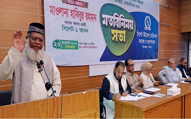 জামায়াতের কেন্দ্রীয় মজলিসে শুরা সদস্য, সিলেট জেলা আমীর ও সিলেট-১ (মহানগর ও সদর) আসনে জামায়াত ও ১০ দলীয় জোট মনোনীত সংসদ সদস্য পদপ্রার্থী মাওলানা হাবিবুর রহমান বলেছেন, অপার সম্ভাবনা থাকা সত্বেও সৎ নেতৃত্বের অভাবে দেশ পিছিয়ে রয়েছে। চব্বিশে ছাত্র-জনতার গণ-অভ্যুত্থানে দেশ ফ্যাসিবাদ মুক্ত হওয়ার পরও সন্ত্রাস, দুর্নীতি ও চাঁদাবাজী বন্ধ করা যায়নি। এর একটাই কারণ রাষ্ট্র পরিচালনায় সুযোগ্য ও সৎ নেতৃত্বের অভাব। একটি দেশ, জাতি ও সমাজকে পরিবর্তন করতে হলে রাষ্ট্র পরিচালনার সৎ ও যোগ্য মানুষকে নির্বাচিত করা। জামায়াত এক ঝাঁক সৎ ও আদর্শবান মানুষ তৈরী করেছে। আগামী নির্বাচনে দাঁড়িপাল্লা প্রতীককে নির্বাচিত করুন আমরা ইনসাফভিত্তিক মানবিক সমাজ উপহার দিবো। একইসাথে সবার জন্য সরকারী খরচে সুনিশ্চিত করা হবে।