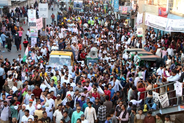 সোমবার (৯ ফেব্রুয়ারি) বিকাল সাড়ে ৩টায় সিলেট নগরীর আলিয়া মাদরাসা মাঠ থেকে শুরু হয় মিছিল। ধানের শীষ প্রতীকের প্রার্থী খন্দকার আব্দুল মুক্তাদিরের নেতৃত্বে মিছিলে বিএনপি, ছাত্রদল, যুবদল, স্বেচ্ছাসেবকদল, কৃষকদল, শ্রমিকদল, মহিলাদল-সহ অঙ্গ ও সহযোগী সংগঠনের বিভিন্ন পর্যায়ের নেতাকর্মী অংশগ্রহণ করেন। তবে সব ছাপিয়ে বিভিন্ন শ্রেণি-পেশার সাধারণ মানুষের স্বতঃস্ফূর্ত অংশগ্রহণ সবার দৃষ্টি কাড়ে।