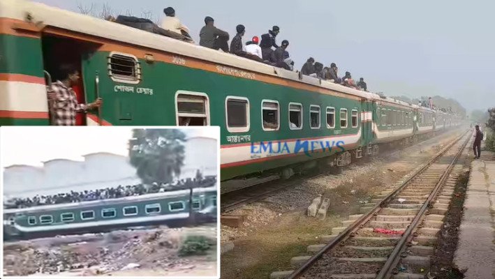 গতকাল মঙ্গলবার ঢাকা-সিলেট রুটে যাত্রীদের চাপ বাড়ে কয়েকগুণ। ঢাকা থেকে সিলেটের উদ্দেশ্যে ছেড়ে আসা ‘পাহাড়িকা এক্সপ্রেস’ ট্রেনে তিল ধারণের ঠাঁই ছিল না। ট্রেনের বগিগুলোতে তো বটেই, জীবনের ঝুঁকি নিয়ে ছাদের ওপর চড়েও শত শত মানুষকে সিলেটে ফিরতে দেখা গেছে।