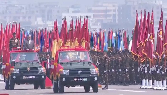 মহান স্বাধীনতা ও জাতীয় দিবস-২০২৬ উপলক্ষে আজ (২৬ মার্চ) সকাল সাড়ে ৯টার দিকে জাতীয় প্যারেড স্কয়ারে কুচকাওয়াজ ও ফ্লাই পাস্ট শুরু হয়েছে। অনুষ্ঠানে রাষ্ট্রপতি মো. সাহাবুদ্দিন ও প্রধানমন্ত্রী তারেক রহমান উপস্থিত আছেন।