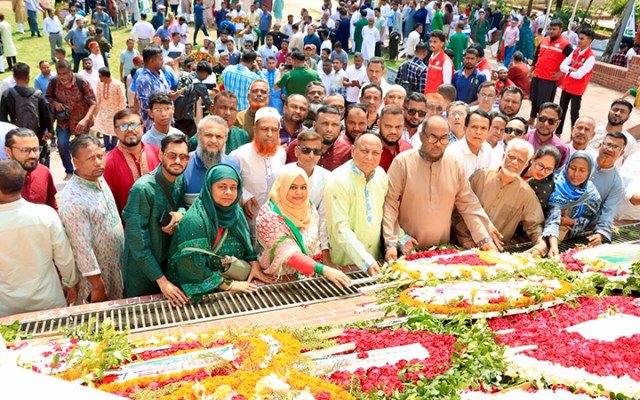 বৃহস্পতিবার সকাল ১০টায় সিলেট কেন্দ্রীয় শহীদ মিনারে জেলা বিএনপির সভাপতি ও সিলেট সিটি করপোরেশনের প্রশাসক আব্দুল কাইয়ুম চৌধুরী এবং সাধারণ সম্পাদক ও সিলেট-৬ আসনের সংসদ সদস্য অ্যাডভোকেট এমরান আহমদ চৌধুরীর নেতৃত্বে নেতৃবৃন্দ পুষ্পার্ঘ্য অর্পণ করেন।