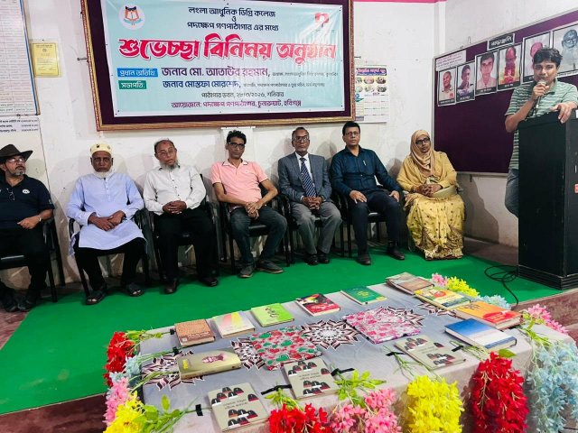 এরপর তারা পদক্ষেপ গণ পাঠাগারের আয়োজনে এক শুভেচ্ছা বিনিময় অনুষ্ঠানে যোগদান করেন। অনুষ্ঠানে ভার্চুয়ালি সভাপতিত্ব করেন পাঠাগারের সভাপতি মোস্তফা মোরশেদ। প্রধান অতিথি ছিলেন কলেজের অধ্যক্ষ মোহাম্মদ আতাউর রহমান। বিশেষ অতিথি ছিলেন লংলা আধুনিক ডিগ্রি কলেজ গভর্নিং বডি সদস্য উস্তার মিয়া, সহকারী অধ্যাপক নাজমুল হোসেন, নাজমা বানু, ইন্দ্রজিৎ রায়, জয়ন্ত দেবনাথ, মোহাম্মদ মাজহারুল ইসলাম ও হেলাল খান।