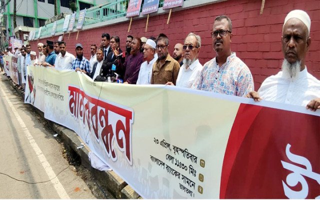 বৃহস্পতিবার (২৩ এপ্রিল) দুপুরে সিলেট নগরীতে ইসলামী ব্যাংকিং গ্রাহক ঐক্য পরিষদের উদ্যোগে অনুষ্ঠিত মানববন্ধনে বক্তাগণ উপরোক্ত কথা বলেন।