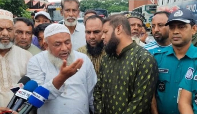 কর্মসূচি স্থগিত নিয়ে মিডিয়ায় কথা বলছেন ময়নুল ইসলাম (ছবি: ইমজা নিউজ)
