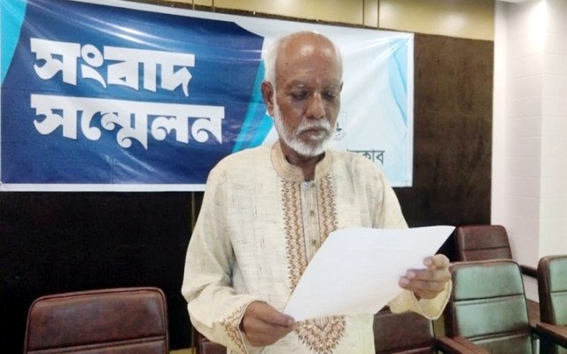 সংবাদ সম্মেলনে বক্তব্য পাঠ করছেন মো. আবলুস মিয়া (ছবি সংগৃহিত)