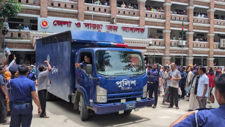 রায় ঘোষনার পর আসামীদের কারাগারে নেয়া হচ্ছে।