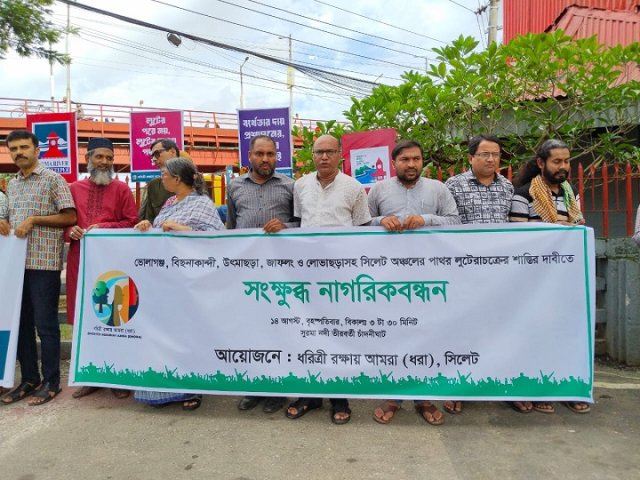 সিলেটের সাদা পাথরসহ বিভিন্ন প্রাকৃতিক সম্পদ লুটপাট ও ধ্বংসের প্রতিবাদে ক্ষুব্ধ নাগরিকবন্ধন অনুষ্ঠিত হয়েছে।