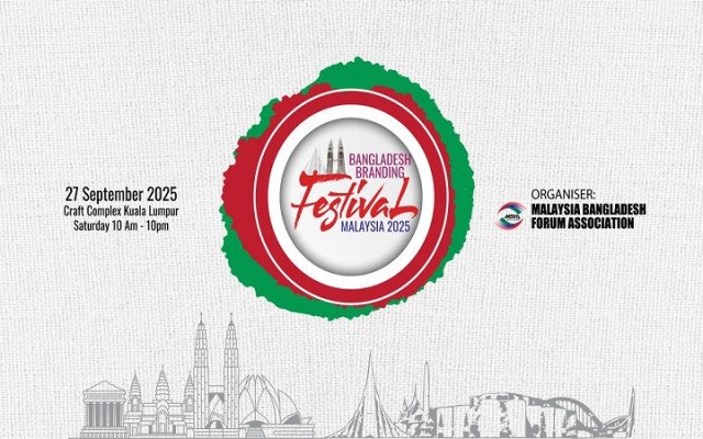 মালয়েশিয়ার রাজধানী কুয়ালালামপুরে আগামী ২৭ সেপ্টেম্বর অনুষ্ঠিত হতে যাচ্ছে ‘বাংলাদেশ ব্র্যান্ডিং ফেস্টিভ্যাল ২০২৫’। সকাল ১০টা থেকে রাত ১০টা পর্যন্ত দিনব্যাপী এই উৎসব ক্রাফট কমপ্লেক্সে অনুষ্ঠিত হবে এবং প্রবেশ সম্পূর্ণ উন্মুক্ত।