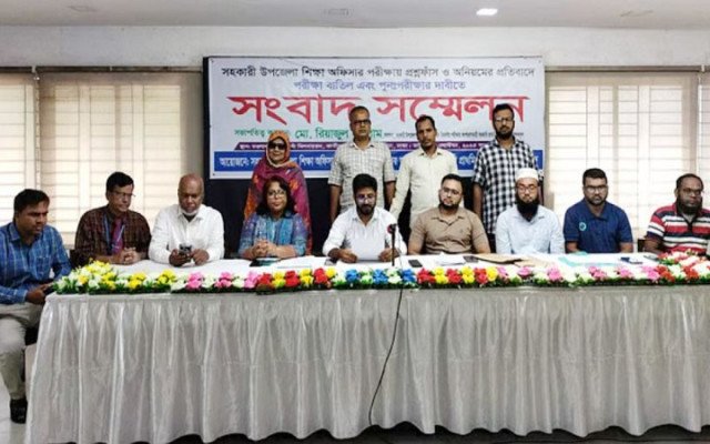 সহকারী উপজেলা শিক্ষা কর্মকর্তা (এটিইও) নিয়োগ পরীক্ষায় প্রশ্নপত্র ফাঁস ও নানা অনিয়মের প্রতিবাদে পরীক্ষা বাতিল এবং পুনঃপরীক্ষার দাবিতে সংবাদ সম্মেলন ও মানববন্ধন অনুষ্ঠিত হয়েছে।